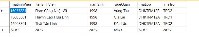 + "where maSinhVien = ?");