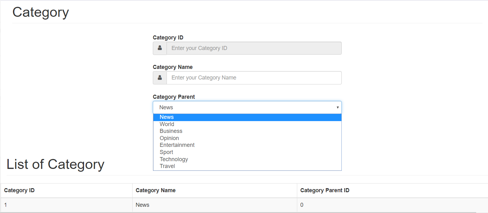 Trong cái select box là tên các category chính ạ.