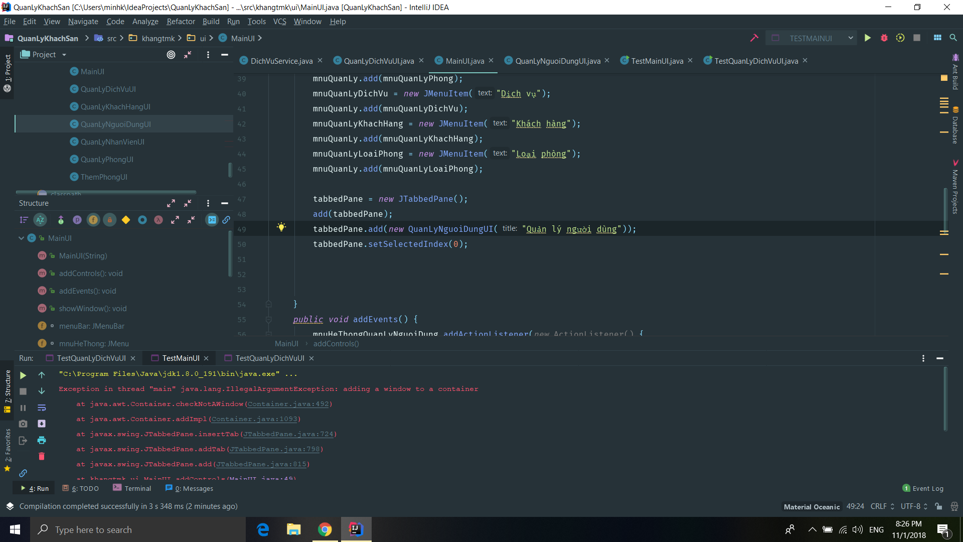 Vấn đề là em đang làm project về java, em cần thêm class Quản lý người dùng UI vào trong tab trong jtabbedpane thì có được ko ạ (em đã tạo sẵn trước đó).