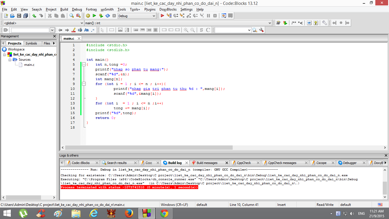 Em cho nhập vào n là độ dài của mảng sau đó em tạo mảng với độ dài n