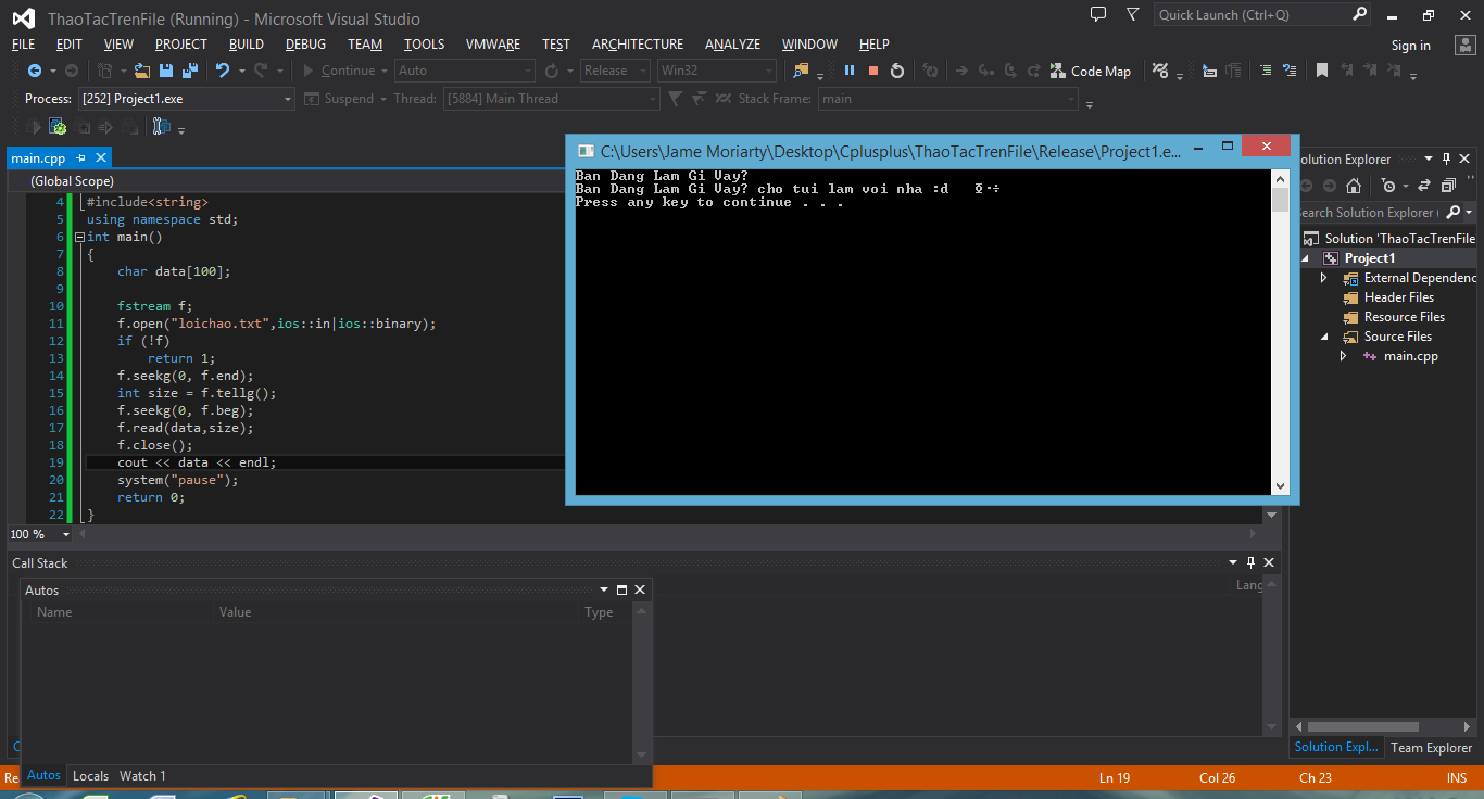 Thứ hai, lỗi này là do bạn tạo mảng char data[100], trong khi nội dung của file loichao.txt có độ dài dưới 100.
