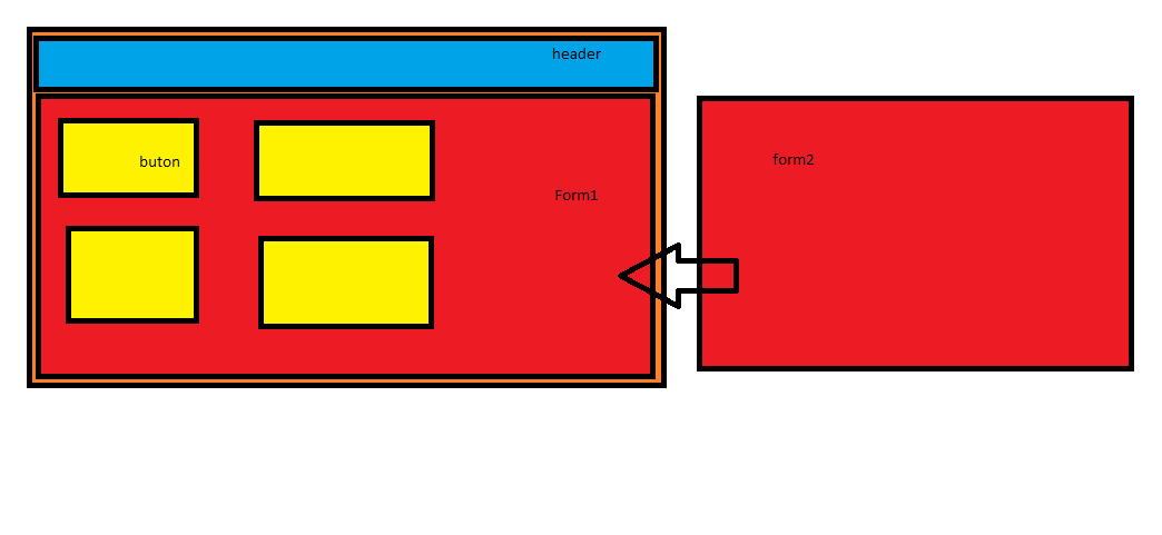 em muốn khi m kích vào cái nút button thì cái form 1 nó thay thế cái form 2 thôi, còn mọi thứ giữ nguyên. Giống như master Page asp.net hya là php. AI biết giúp em với. tks