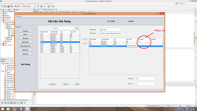Mình muốn thêm cột tên là Số Lượng mà mỗi hàng nó là một JTextField cho phép người dùng nhập giá trị vào đó thì phải làm sao?