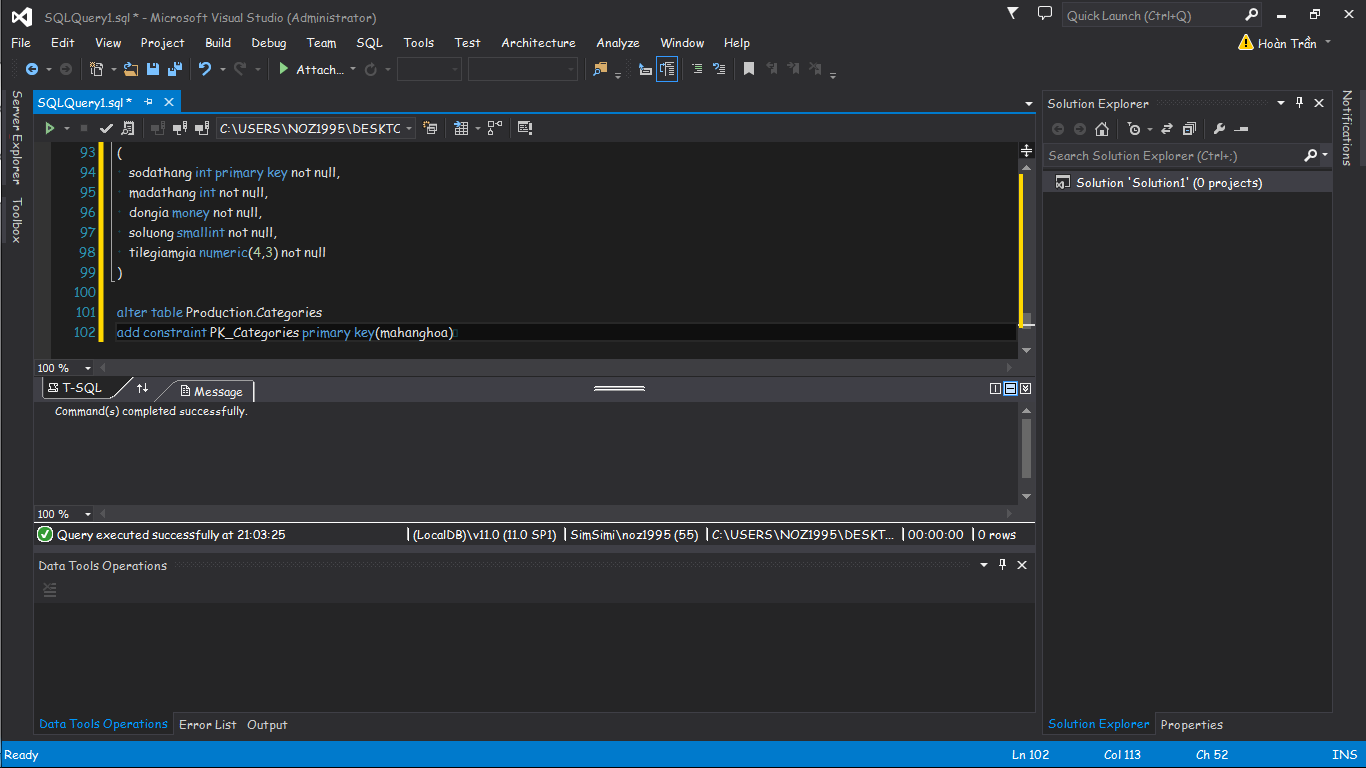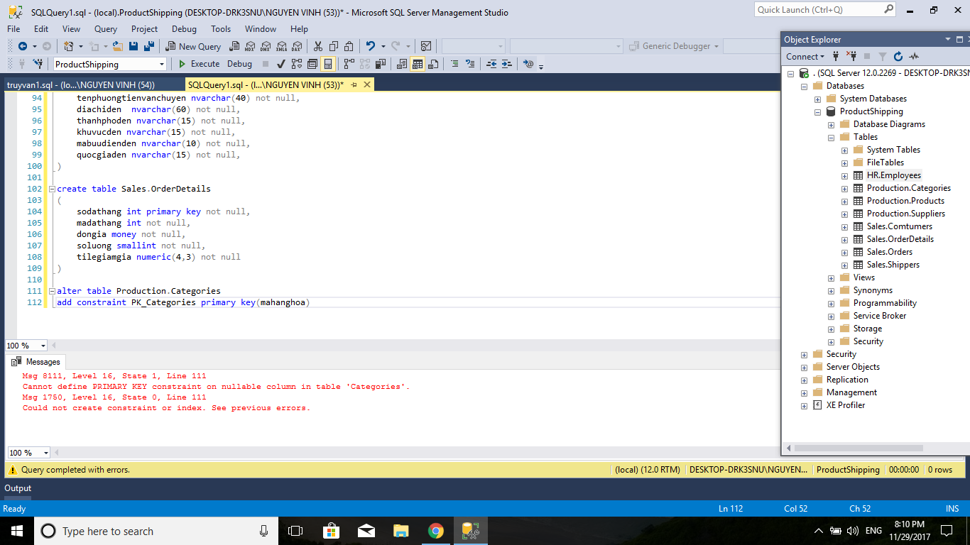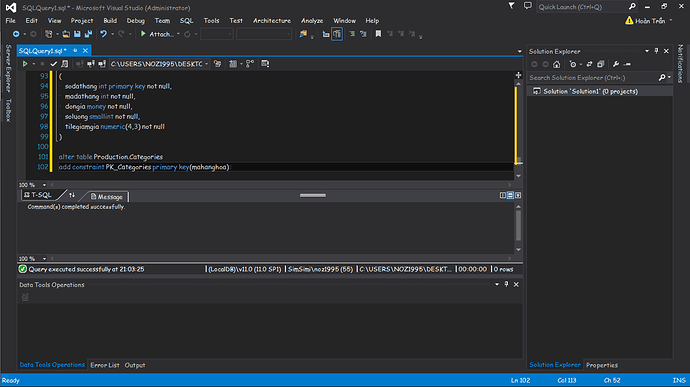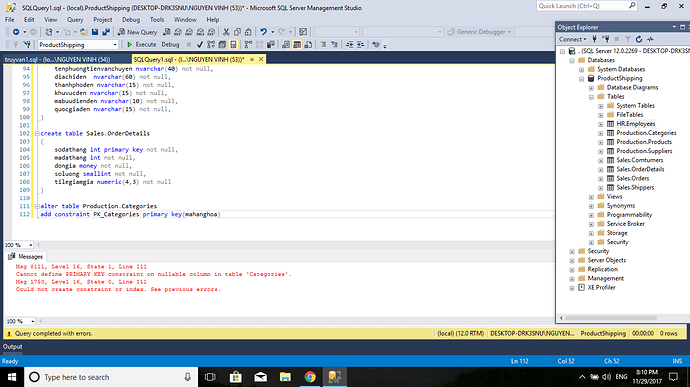 SQL server, khoá chính mặc định not null và luôn luôn là not null, không cần thông báo