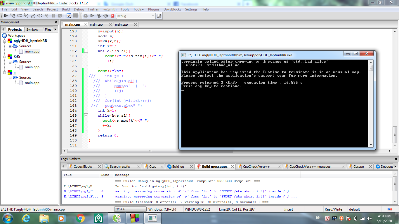 Không hiểu sao em thêm hàm lặp ở cuối thì chương trình lại bị vậy, còn không thêm thì chạy được nhưng lại không đúng được bài toán,anh chị giúp e với