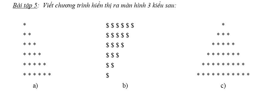 a/ for i=1 to n rồi for j=1 to i
