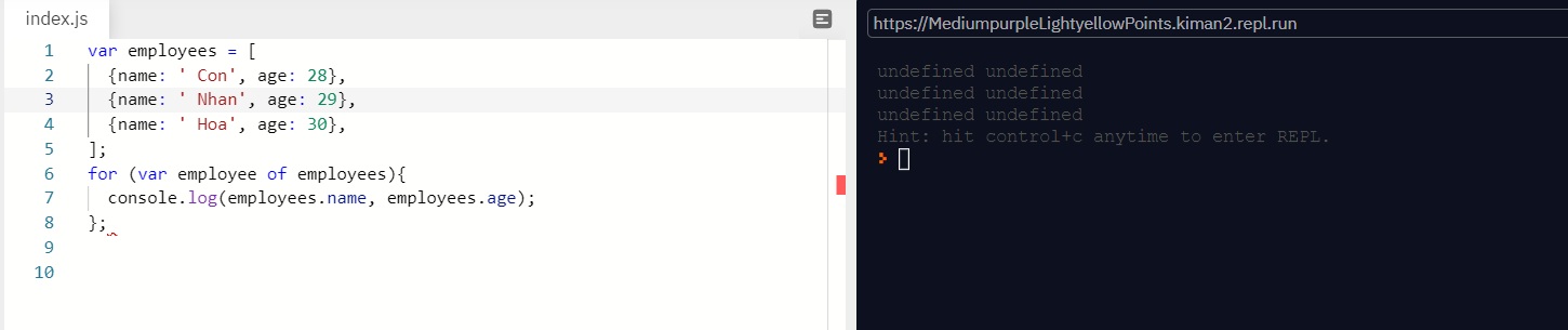 mọi người cho e hỏi tại sao khi chạy code này nó lại ko hiện lên các thông tin kia ạ, e cảm ơn!