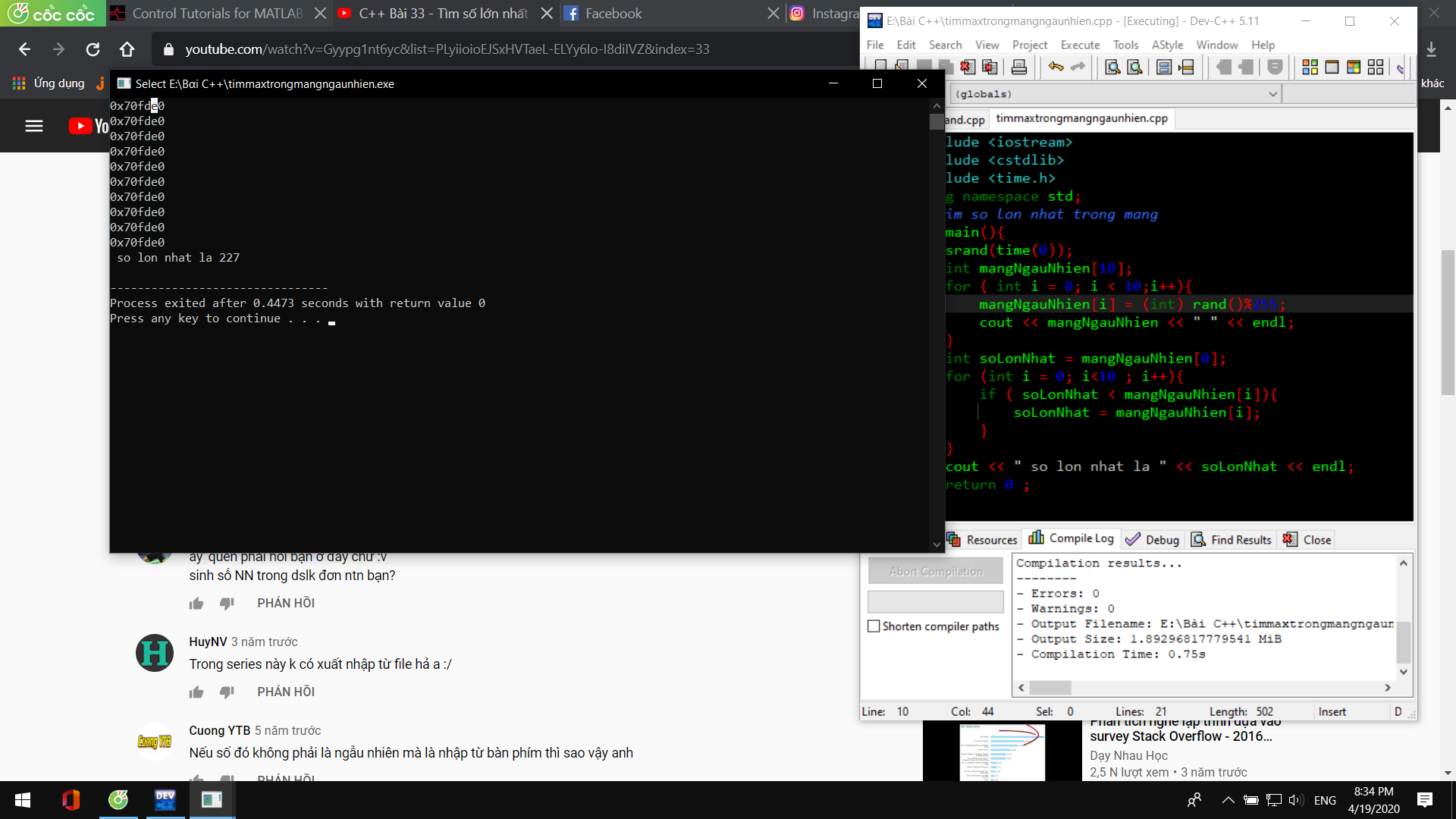 Tìm số lớn nhất trong mảng ngẫu nhiên