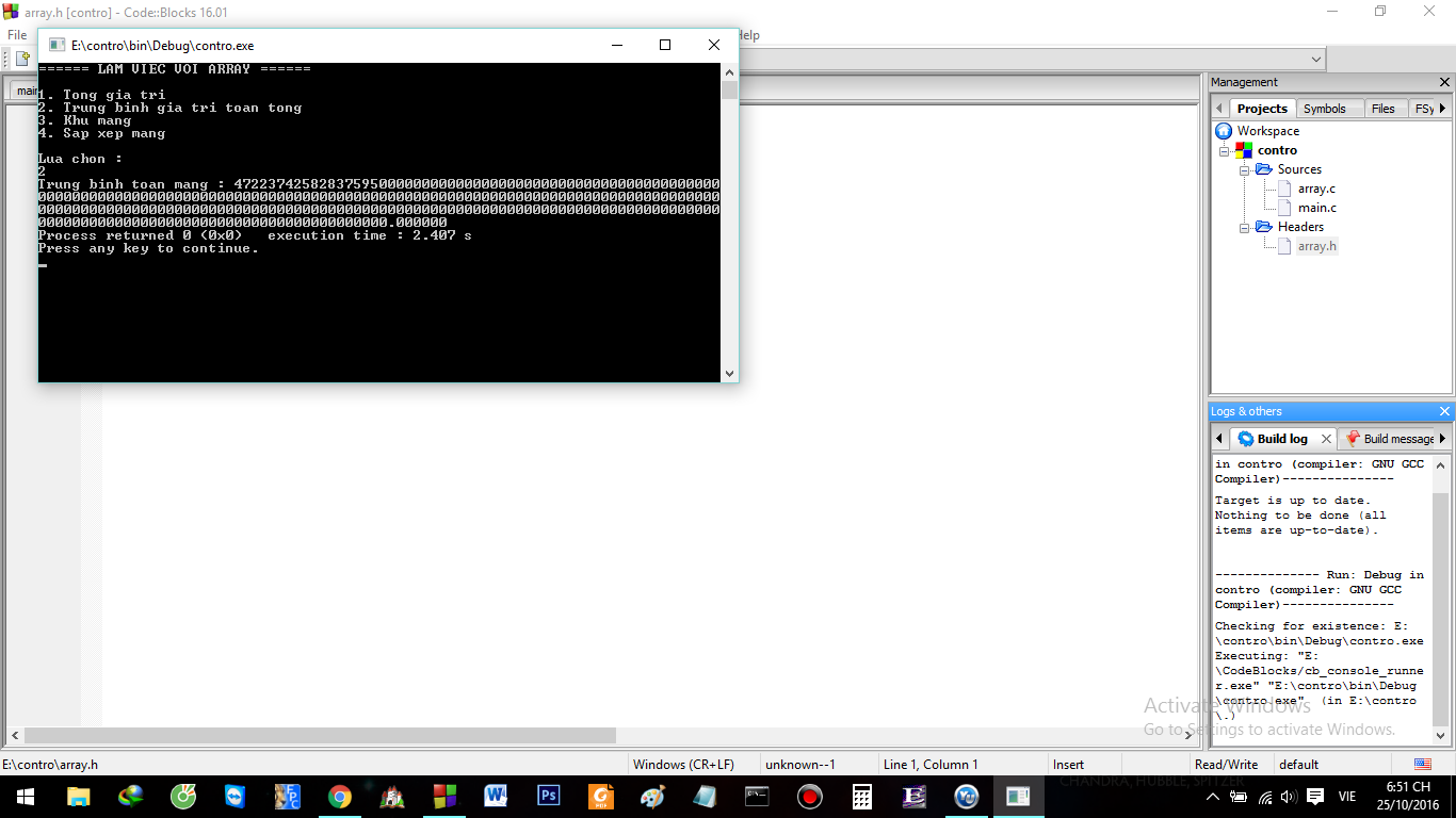 printf("====== LAM VIEC VOI ARRAY ====== \n\n");