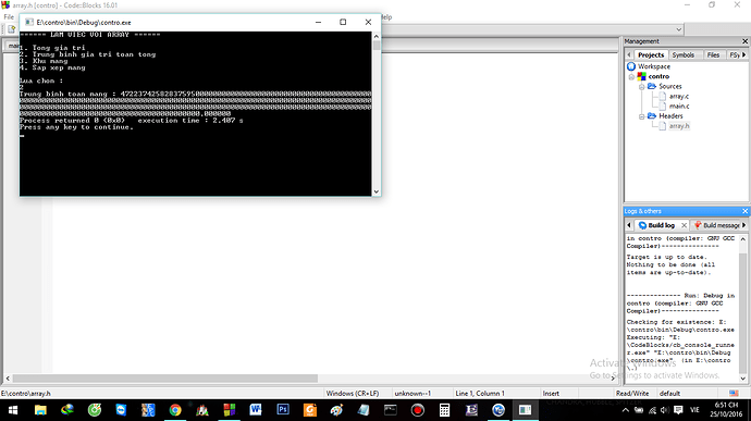 em làm vài hàm về mảng, đến lúc tinh trung bình thì đáng lẽ là 26 thì thành số cực lớn