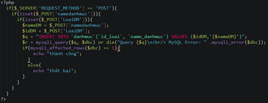 e có viết 1 đoạn php để insert vào database, thì gặp lỗi như này