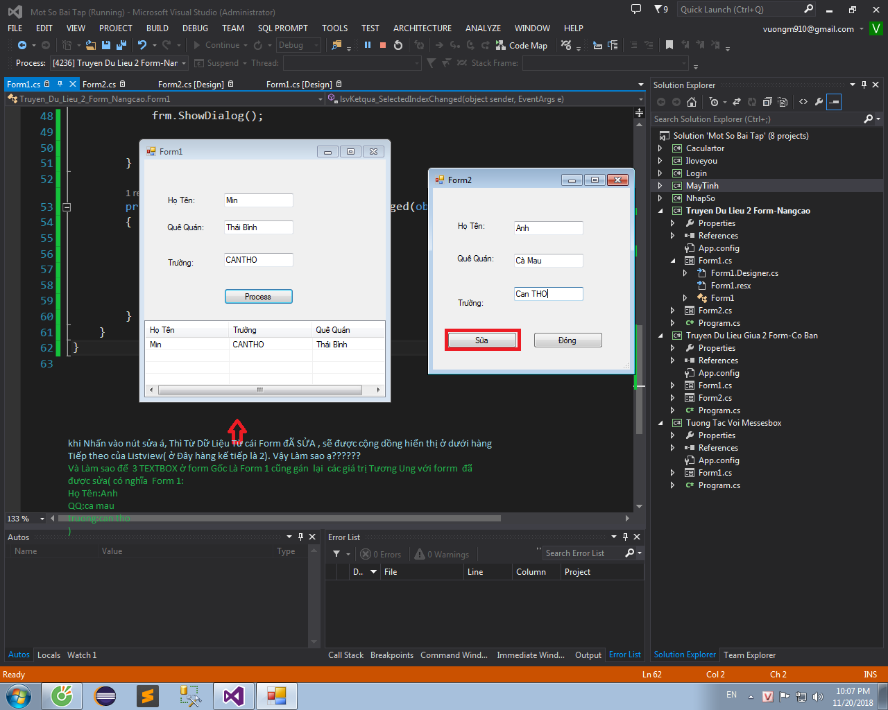 muốn dể thì quẳn luôn cái object listview qua form 2
