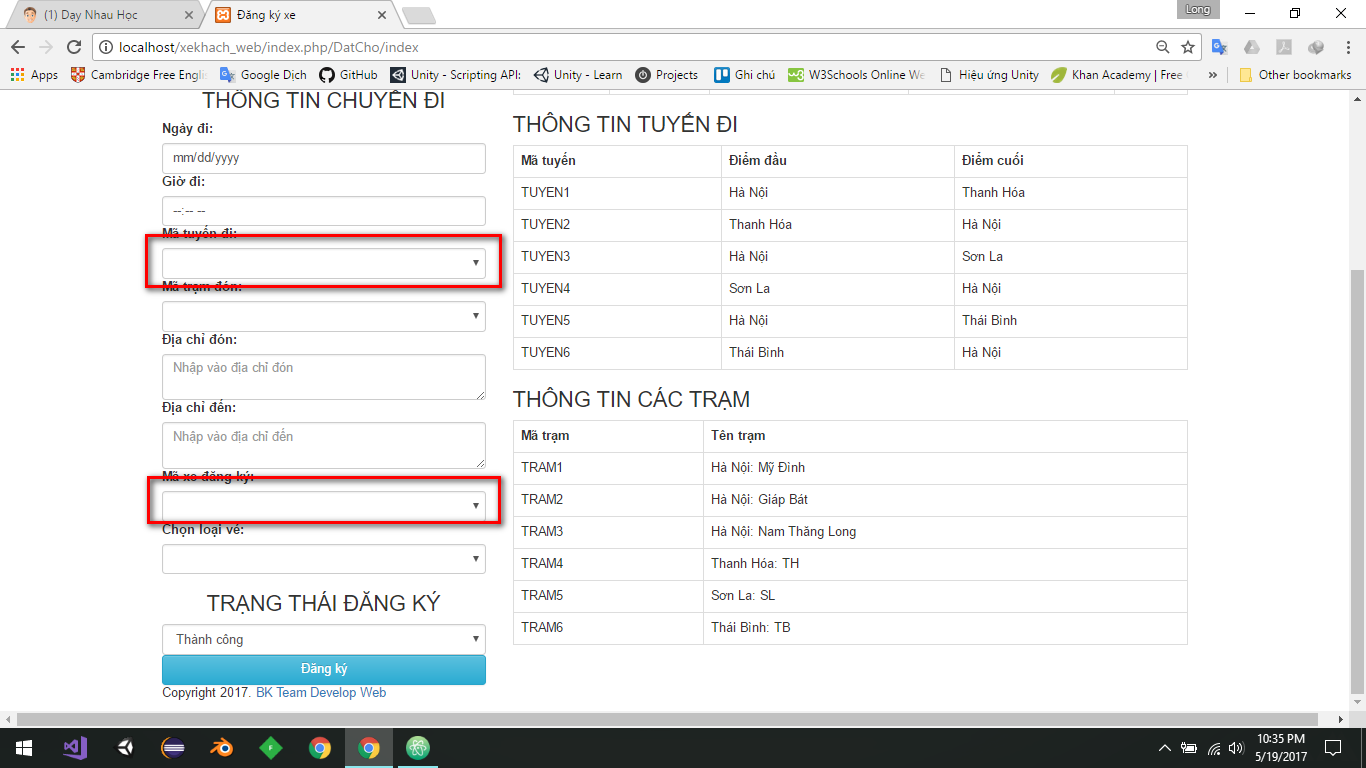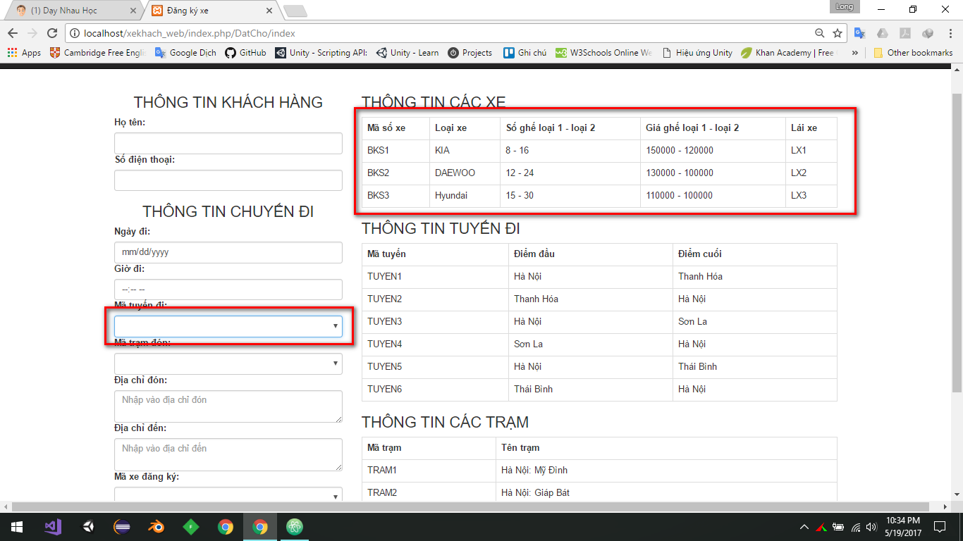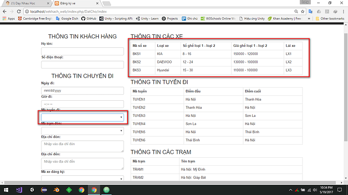 Mọi người cho mình hỏi có cách nào để khi mình select mã tuyến đi thì thông tin các xe và mã xe đăng ký sẽ chỉ show ra các xe đi trên tuyến đó k? Mình cảm ơn, mình dùng php nhé