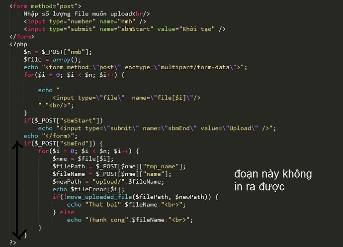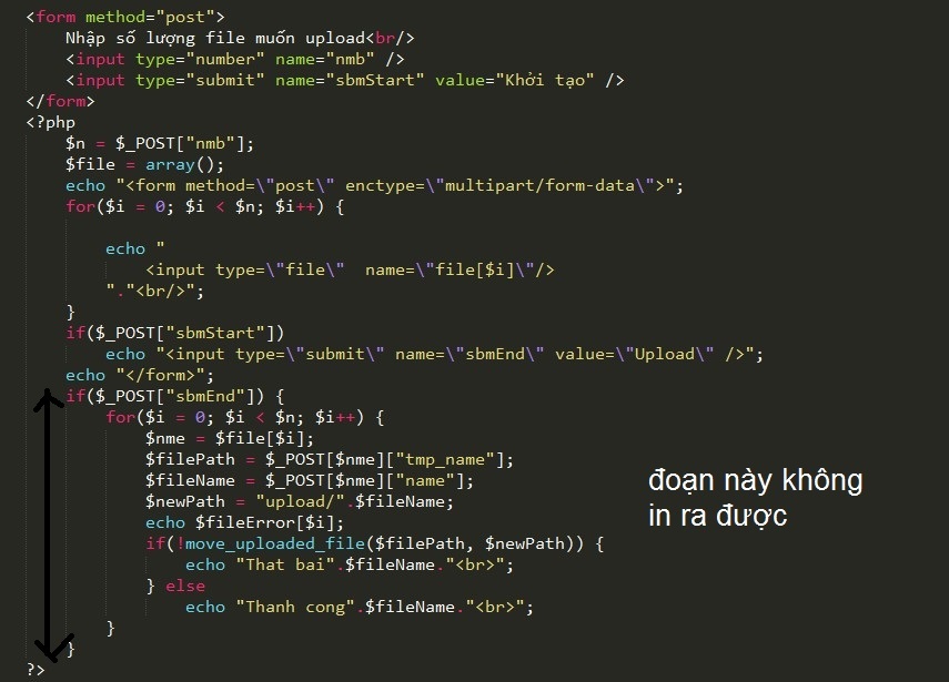Đề: Cho người dùng nhập số file muốn upload và xuất ra thông báo lỗi từng file nếu có.