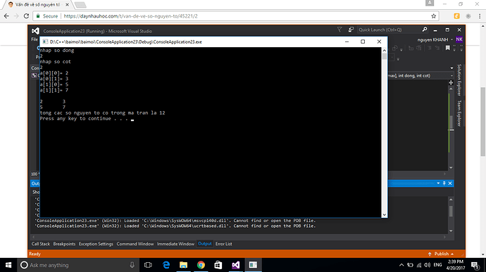 cout << "tong cac so nguyen to co trong ma tran la " << tong << endl;