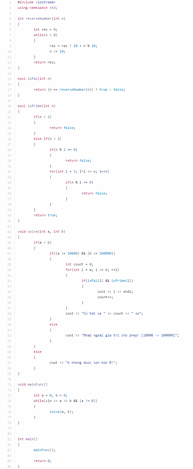 Yêu cầu : Cho hai số nguyên dương A,B thỏa mãn 104 <= A < B <= 105 , hãy viết chương trình liệt kê các biển số đẹp.