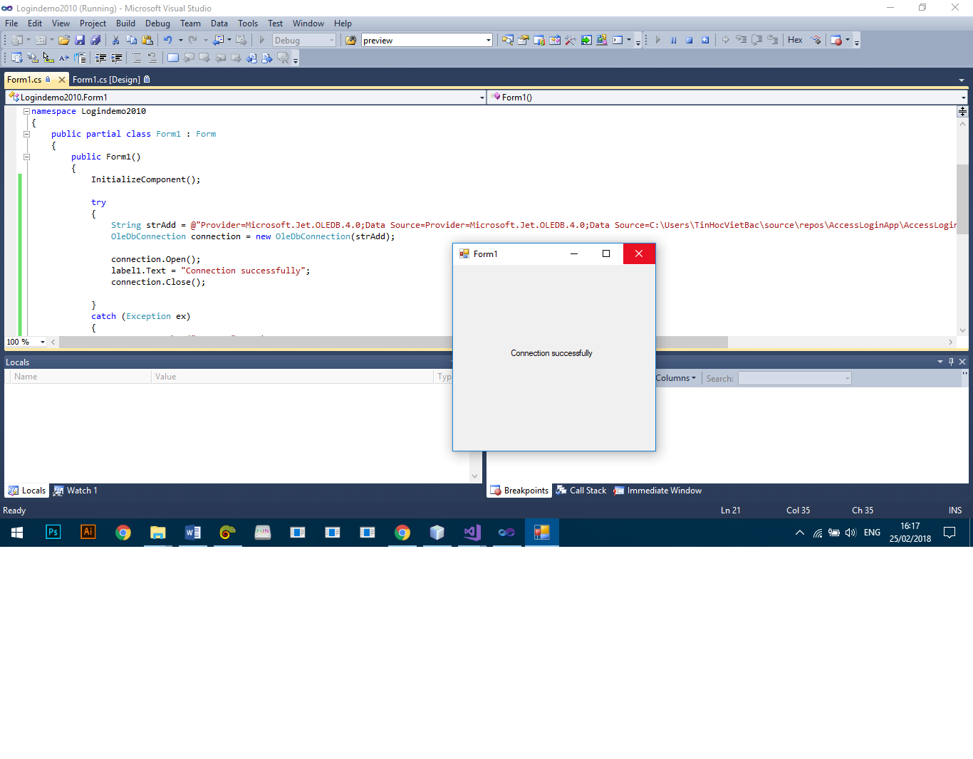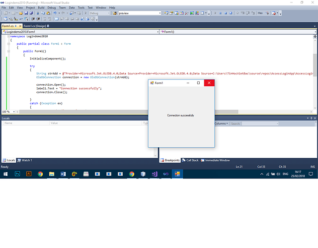Em dùng visual studio 2010 tạo project (winform tên file là Logindemo2010) để kết nối data base thì kết nối database thành công