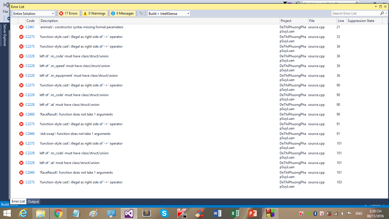 Khi mình compile & run đoạn code này trên VS 2015 thì nó báo 1 đống lỗi mặc dù đã clean nhiều lần: