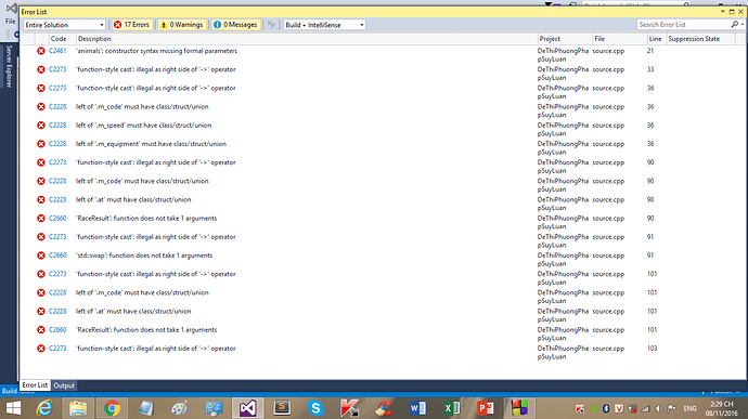 Vậy cho mình hỏi vì sao VS 2015 nó báo nhiều lỗi như thế và cách sửa!