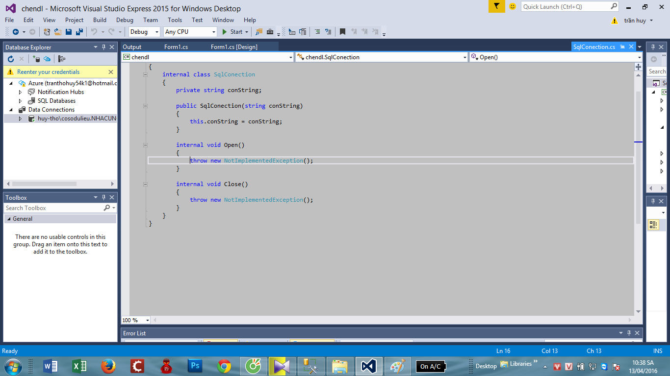 string conString = @"Data Source=HUY-THO\COSODULIEU;Initial Catalog=NHACUNGCAP1;Integrated Security=True";