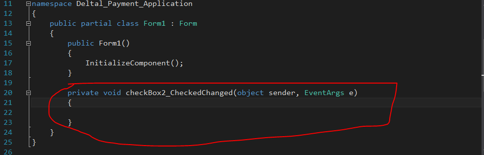 Mở Form1.Designer.cs lên. tìm dòng this.checkBox2.CheckedChanged += new …;
