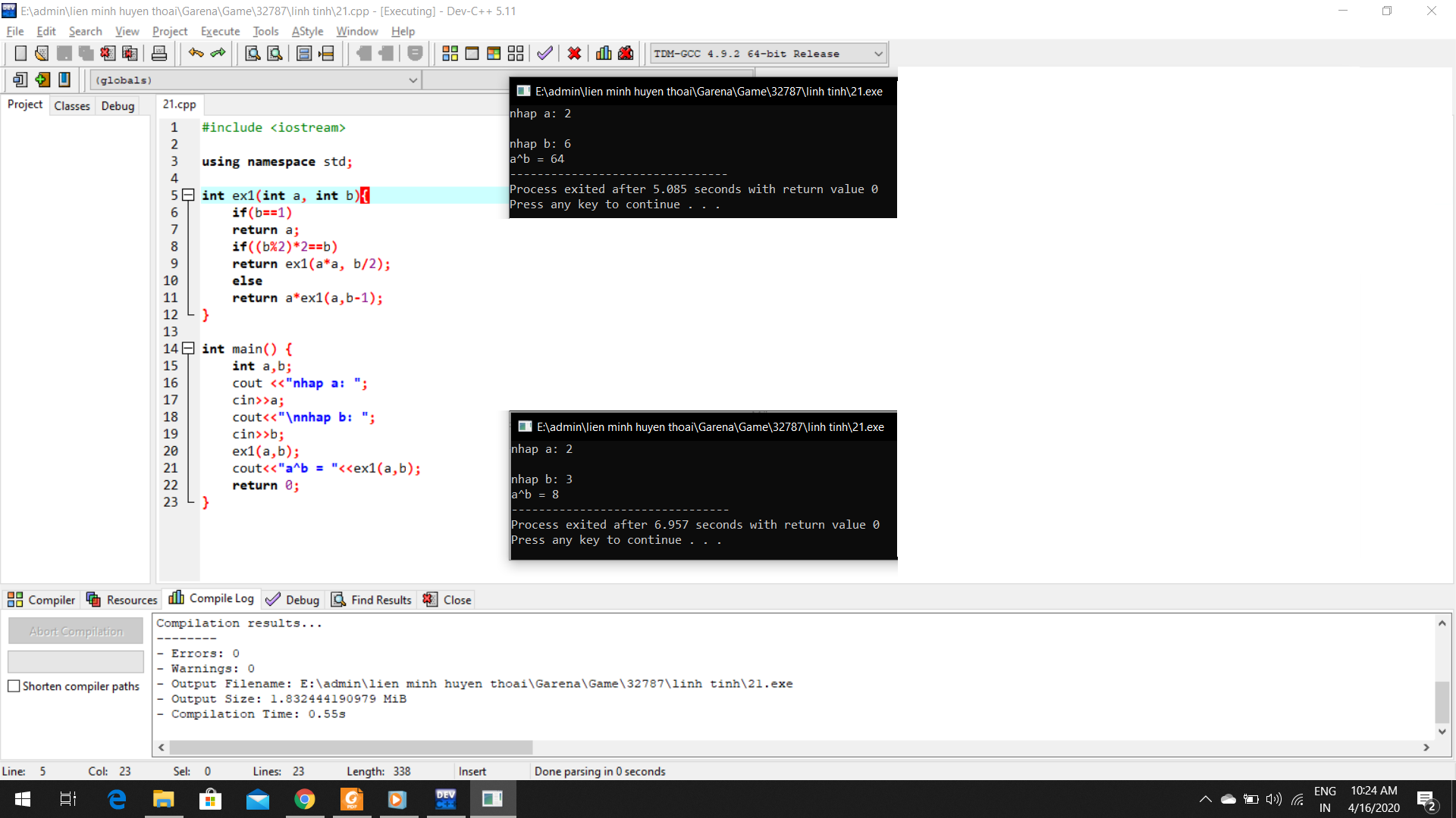 Bạn chặn if b==1 ở if 1 thì if 2 là thừa rồi. Phần sau ra đúng nhưng sẽ không đúng yêu cầu (bình phương - nhân).